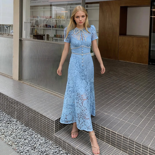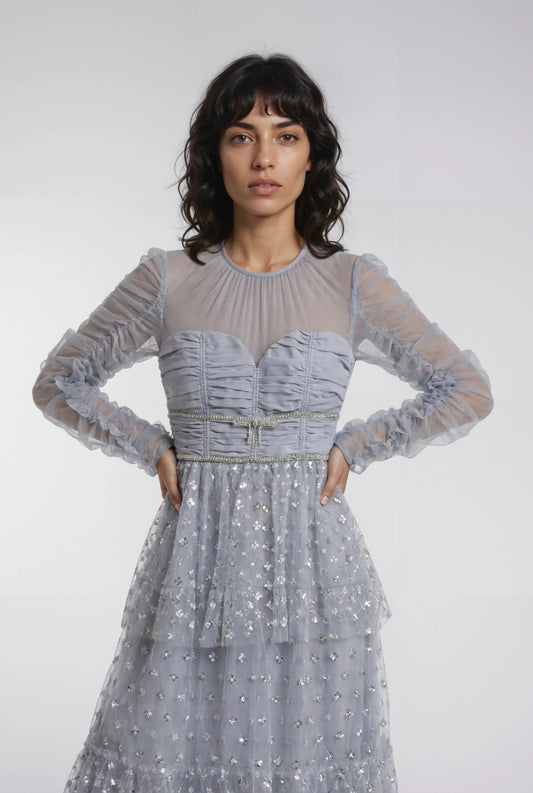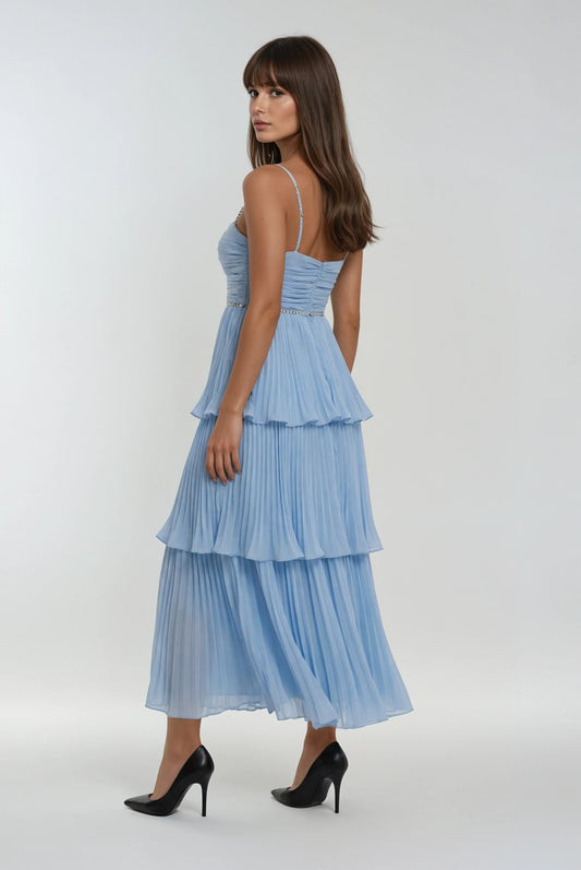 25% İndirimAçık Mavi Lazer Nakışlı Elbise