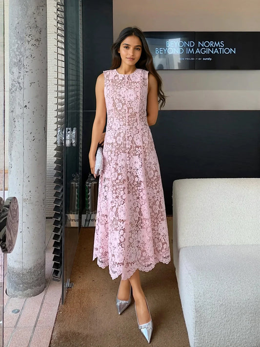 21% İndirimAçık Pembe Kirpik Dantelli Elbise
