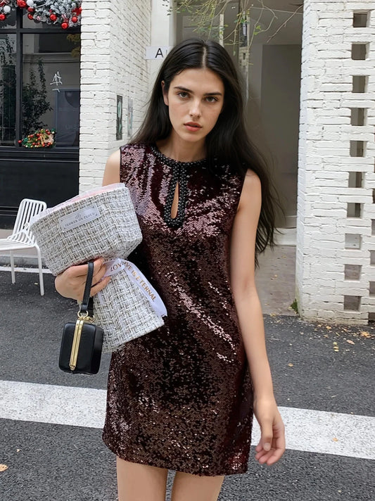 25% İndirimŞarap Kırmızısı Pul İşlemeli Elbise