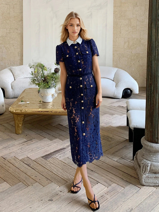 20% İndirimDantel Süslemeli Mavi/Siyah Elbise