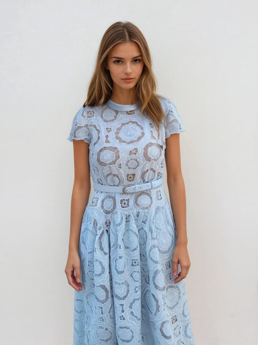 34% İndirimAçık Mavi Dantel Midi Elbise