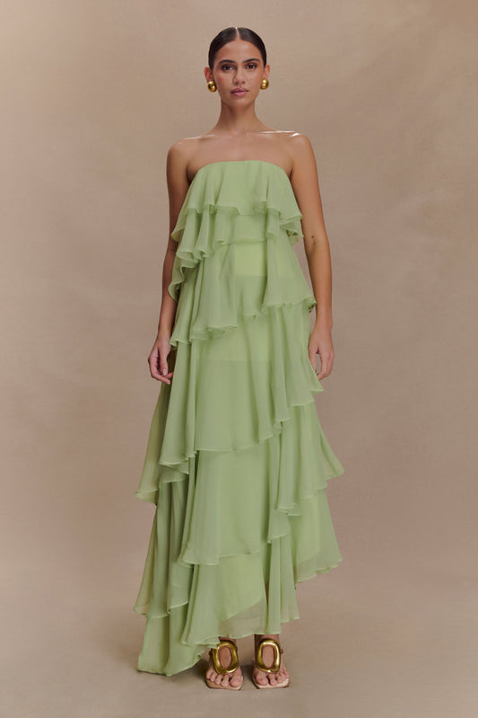 Alexa Ruffle Şifon Uzun Elbise - Pastel Limon Yeşili