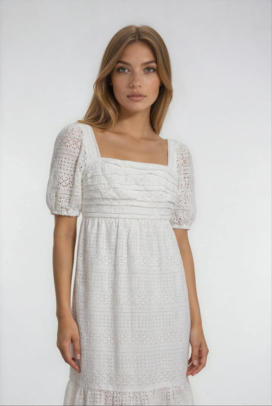 30% İndirimAğır Dantel Süslemeli Beyaz Elbise