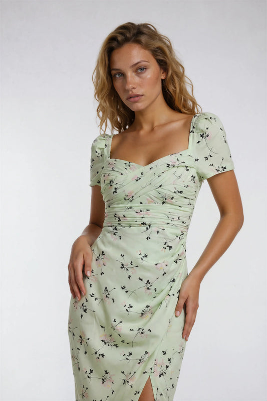 35% İndirimAçık Yeşil Baskılı Uzun Elbise