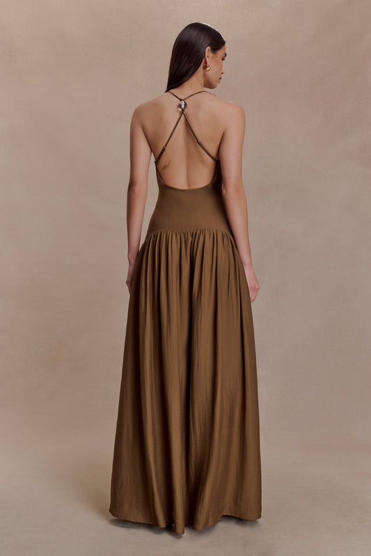Dania Cowl Neck Slinky Maxi Elbise - Mocha Mousse