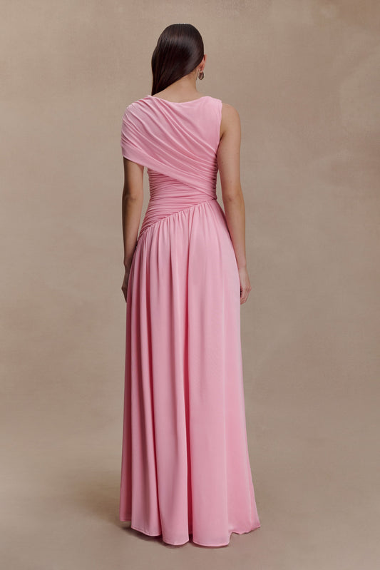 Ayeshya Slinky Asimetrik Uzun Elbise - Şeker Pembesi