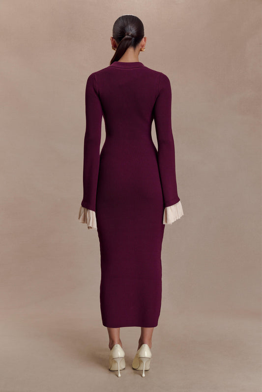 34% İndirimAmirose Volanlı Örgü Midi Elbise - Erik