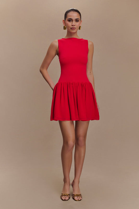 36% İndirimAshleigh Örgü Ve Şifon Mini Elbise - Kırmızı