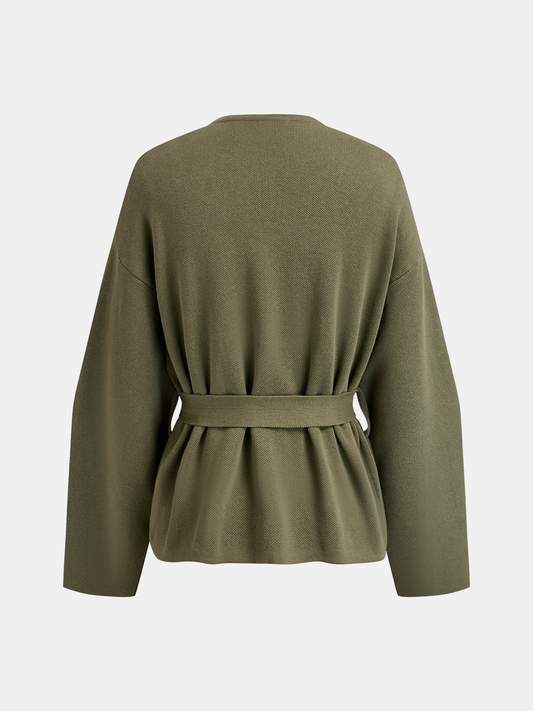 36% İndirimAsimetrik Düğmeli Kemerli Örme Ceket