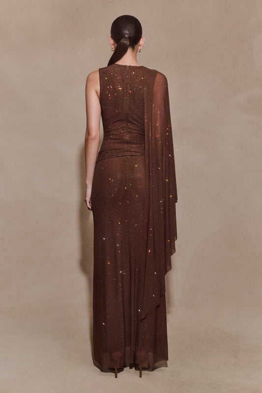 35% İndirimBakari Diamante Pelerinli Uzun Elbise - Çikolata