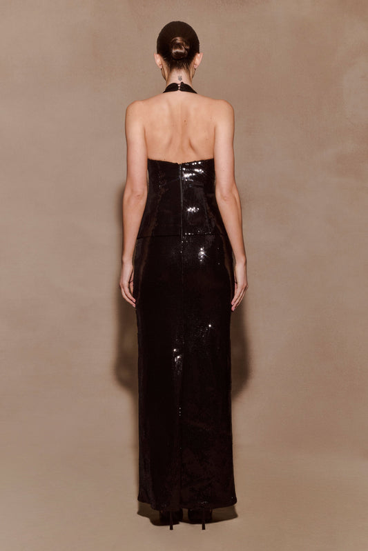 34% İndirimBertie Payetli Peplum Askılı Uzun Elbise - Siyah