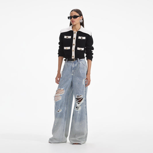34% İndirimKontrast Yaka Siyah Örgü Hırka