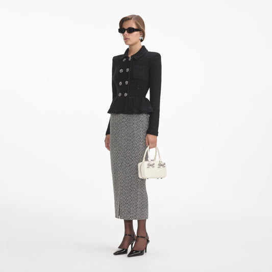 36% İndirimSiyah Dokulu Örme Peplum Ceket