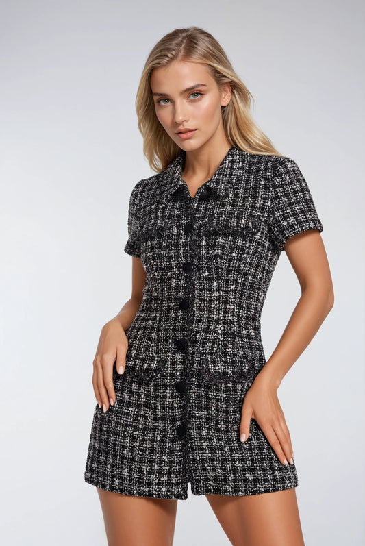 32% İndirimGizli Düğmeli Tüvit Mini Elbise
