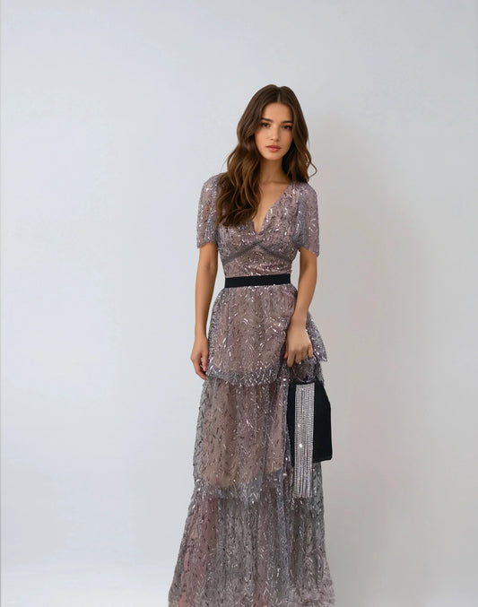 21% İndirimYaprak Desenli Payetli Elbise