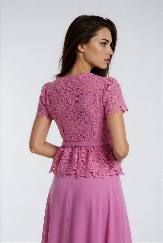 26% İndirimLotus Pembesi Dantelli Elbise