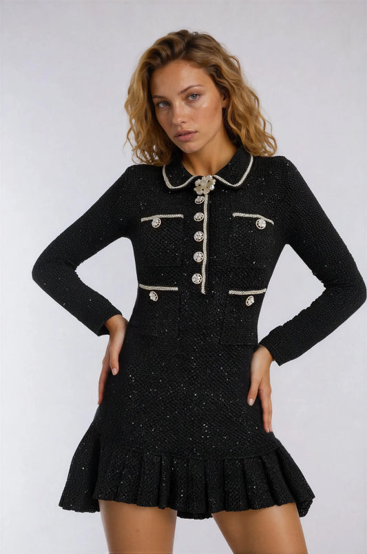 45% İndirimSiyah Kadife Süslemeli Mini Elbise