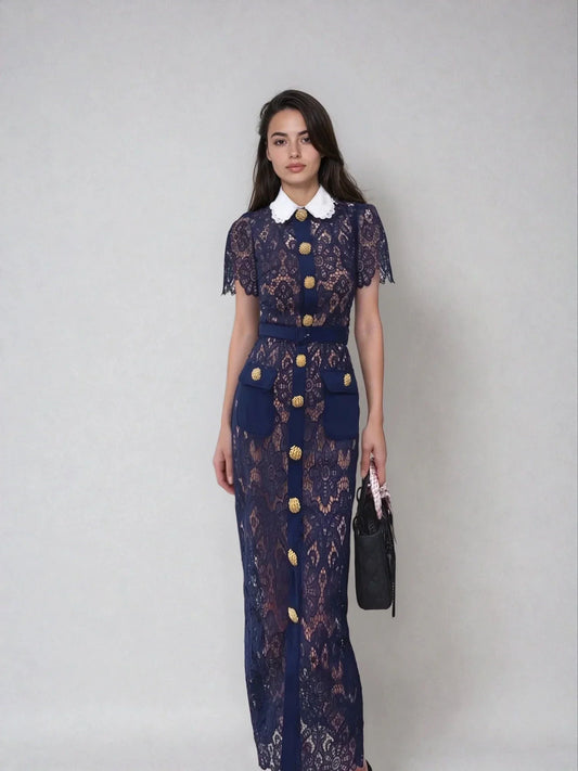 21% İndirimLacivert Dantel Uzun Elbise