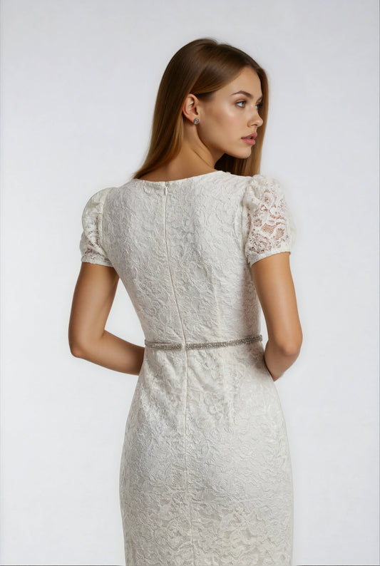 33% İndirimDantel İşlemeli Krem Rengi Mini Elbise