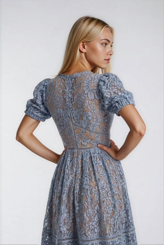 26% İndirimÖzel Dantel Detaylı Açık Mavi Elbise
