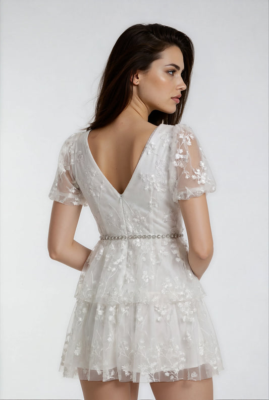 32% İndirimİşlemeli Beyaz Mini Elbise