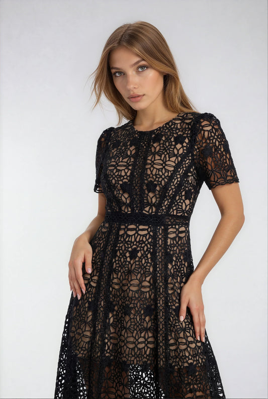 31% İndirimSiyah Tığ İşi Dantel Elbise