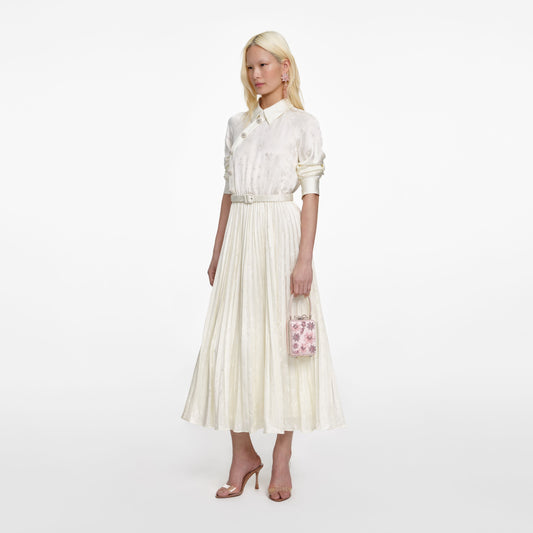35% İndirimKrem Saten Jakarlı Midi Elbise