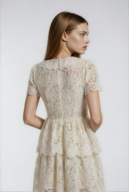 34% İndirimBeyaz Dantel Peplum Midi Elbise