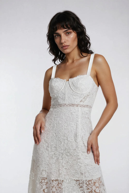 30% İndirimÖzel Dantel İşlemeli Beyaz Elbise
