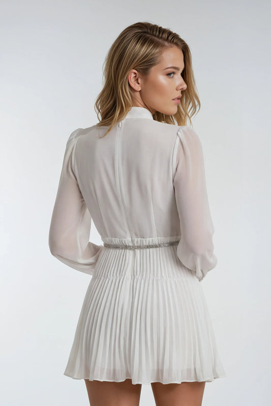 34% İndirimKrem Buklet Fiyonk Detaylı Midi Elbise