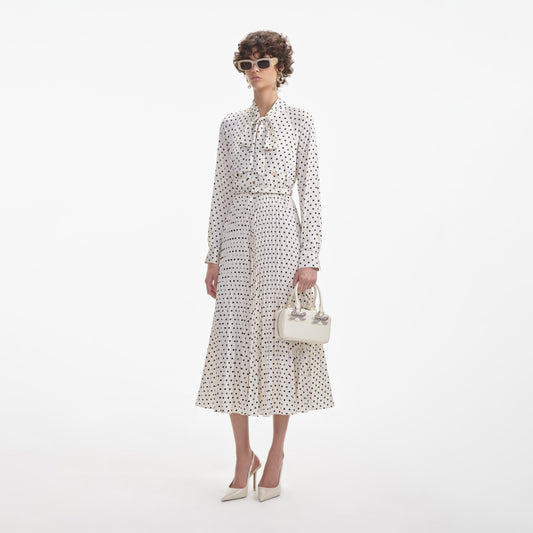 35% İndirimKrem Puantiyeli Saten Midi Elbise