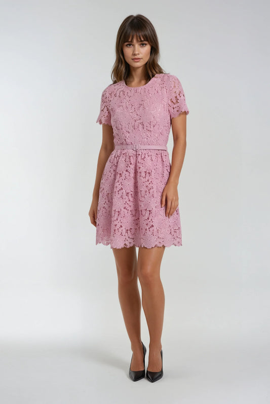 28% İndirimDantel Süslemeli Pembe Mini Elbise