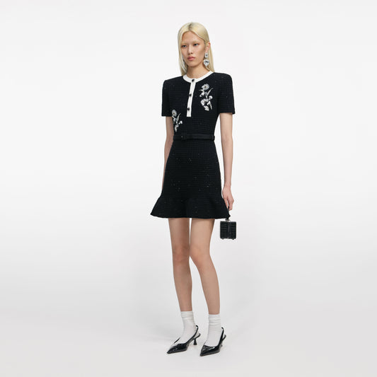34% İndirimSiyah Çiçekli Dokulu Örme Mini Elbise