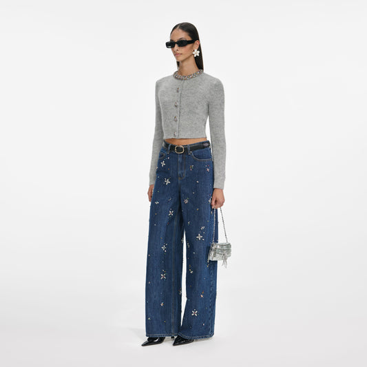 33% İndirimGri Kabarık Kristal Kenarlı Hırka
