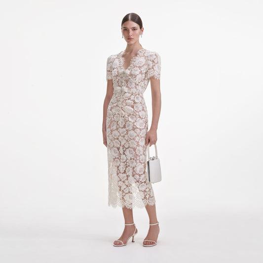 34% İndirimBeyaz İnce Dantel Midi Elbise