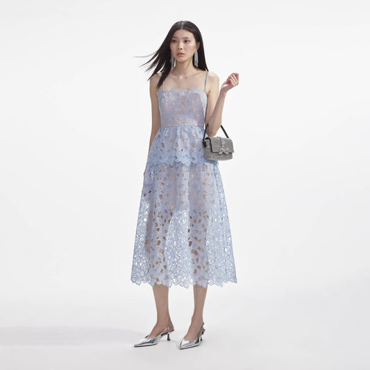 36% İndirimMavi Organze Dantel Midi Elbise