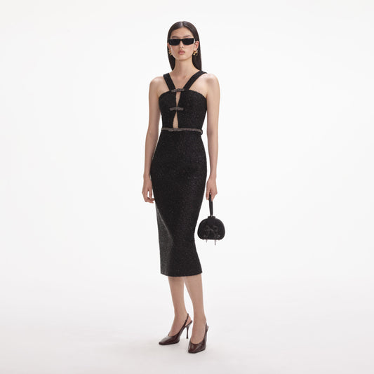 34% İndirimSiyah Simli Buklet Midi Elbise