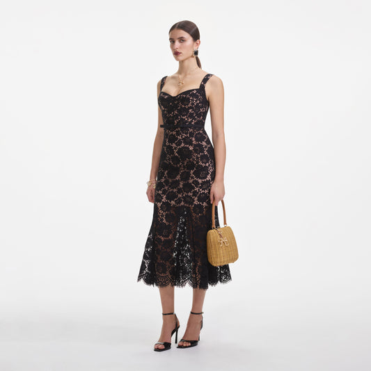 36% İndirimSiyah İnce Dantel Midi Elbise