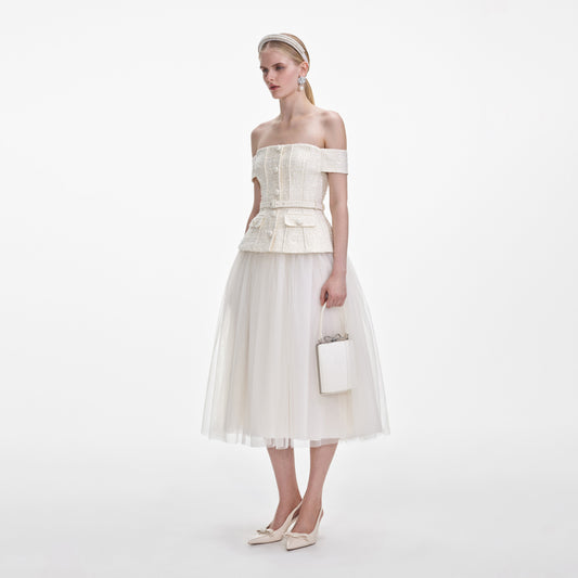 35% İndirimKrem Buklet Tül Midi Elbise