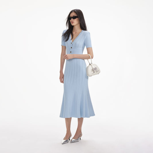 Mavi Pointelle Örgü Midi Elbise