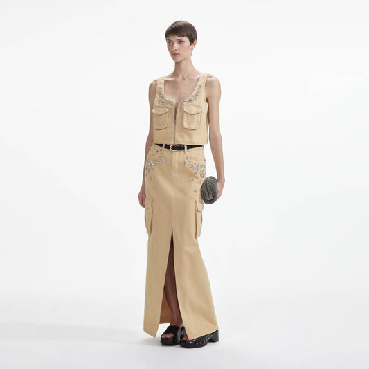 36% İndirimSüslemeli Kot Kargo Uzun Etek