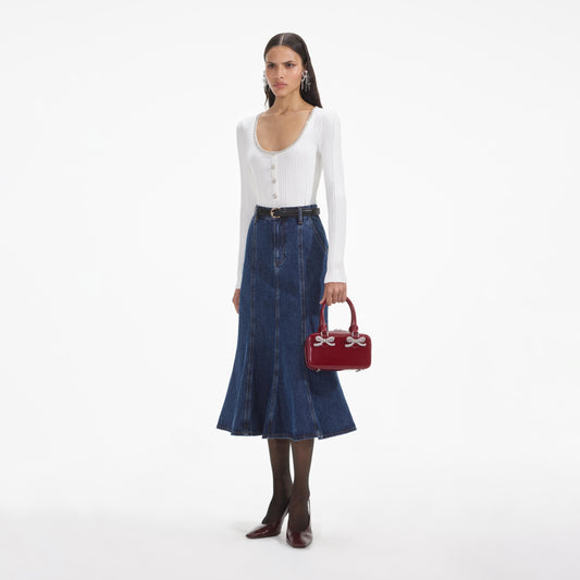 34% İndirimKırmızı Örme Kalp Düğmeli Midi Etek