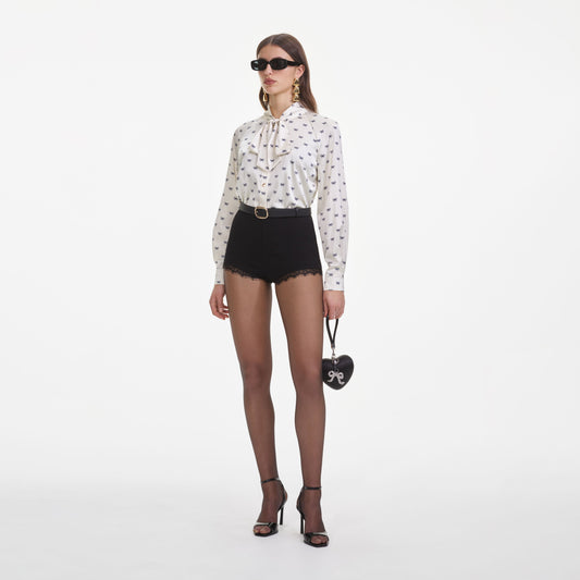 35% İndirimKrem Saten Fiyonk Baskılı Bluz