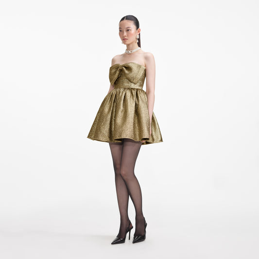 35% İndirimAltın Metalik Jakarlı Mini Elbise