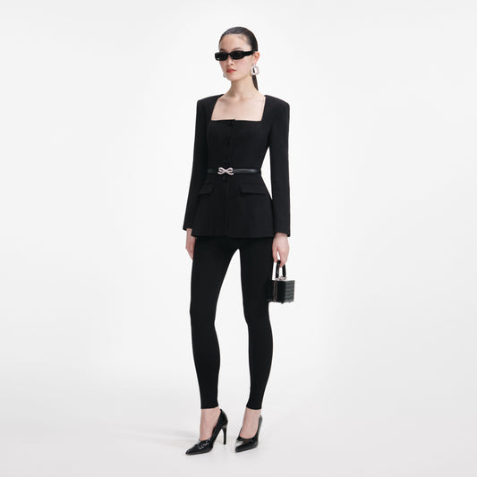 32% İndirimSiyah Yün Yuvarlak Yaka Ceket