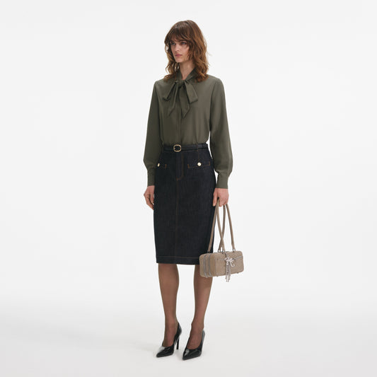 34% İndirimSiyah Metalik Bağcıklı Yaka Bluz