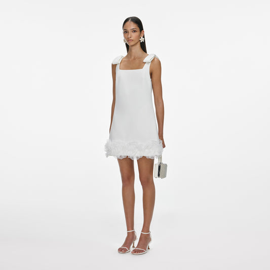 34% İndirimBeyaz Krep 3D Çiçekli Mini Elbise