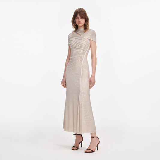 35% İndirimŞampanya Taşlı File Kesim Midi Elbise