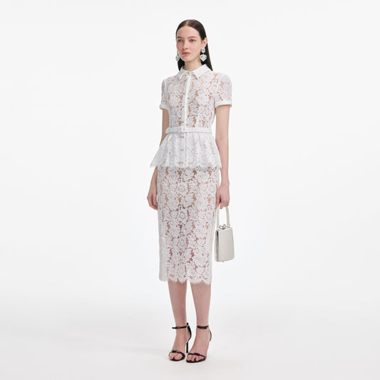 34% İndirimBeyaz Dantel Peplum Midi Elbise