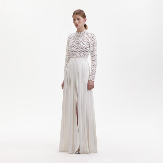 34% İndirimPileli Tığ İşi Çiçekli Uzun Elbise